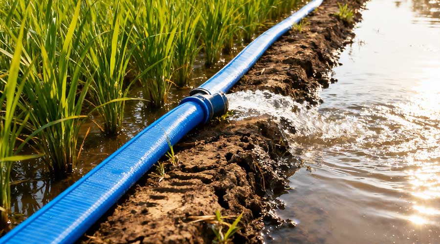 PVC lay flat hose is suitable for agriculture. It has high pressure, is UV-resistant, fold-resistant, and resistant to mud and sand abrasion. It is easy to roll and unwind, improves drainage efficiency, and reduces labor maintenance costs.