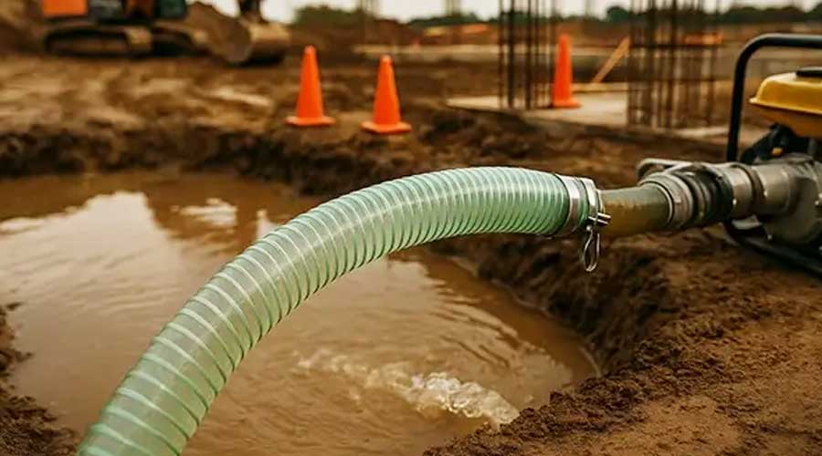 PVC suction hose is used for drainage in the construction industry. It can withstand negative pressure without collapsing, is wear-resistant and fold-resistant, and is compatible with light particles and sediment media.